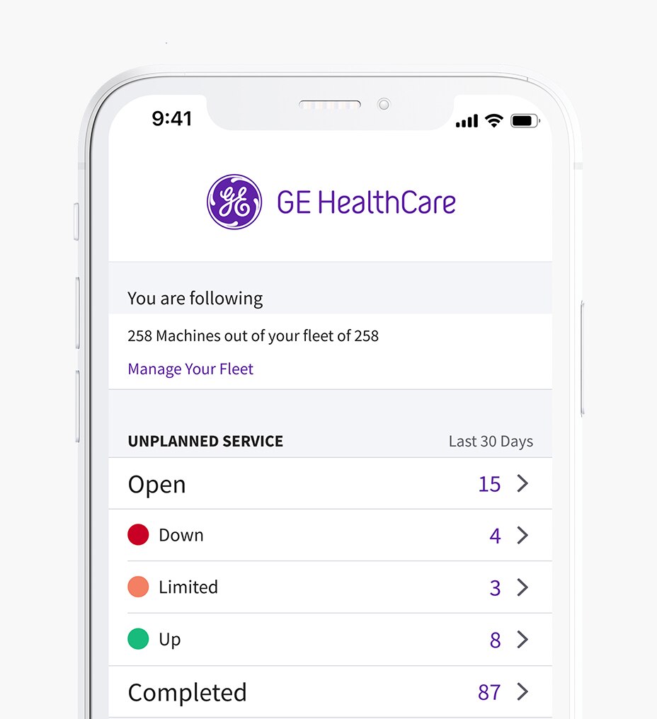 You work hard to stay agile, in touch and ahead of the many challenges of managing your healthcare equipment fleet. That’s why there’s MyGEHealthCare: the hassle-free way to manage your digital relationship with GEHealthCare in real time, in one place. Through the MyGEHealthCare app, we bring you comprehensive support and total equipment fleet visibility. It’s all available with a single login and one seamless experience.